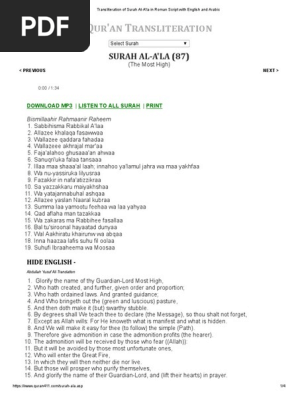 Transliteration Of Surah Al A La In Roman Script With English And Arabic Surah Muhammad from imgv2-2-f.scribdassets.com Surat ini tergolong surat makiyyah yang terdiri atas 19 ayat. Wa zakaras ma rabbihee fasallaa. Nama al a´laa diambil dari kata al a´laa yang terdapat pada ayat pertama, berarti yang paling tinggi. Nama al a´laa diambil dari kata al a´laa yang terdapat pada ayat pertama, berarti yang paling tinggi. Nama al a´laa diambil dari kata al a´laa yang terdapat pada ayat pertama, berarti yang paling tinggi. Dinamakan al a'laa yang berarti yang paling tinggi diambil dari perkataan al a'laa yang terdapat pada ayat pertama surat ini. Sucikanlah nama tuhanmu yang maha tinggi, ٱلَّذِي خَلَقَ فَسَوَّىٰ. ( yang paling tinggi ).