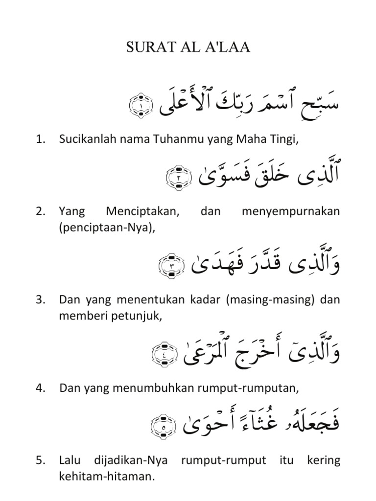 Baca surat al a´laa lengkap bacaan arab, latin & terjemah indonesia.